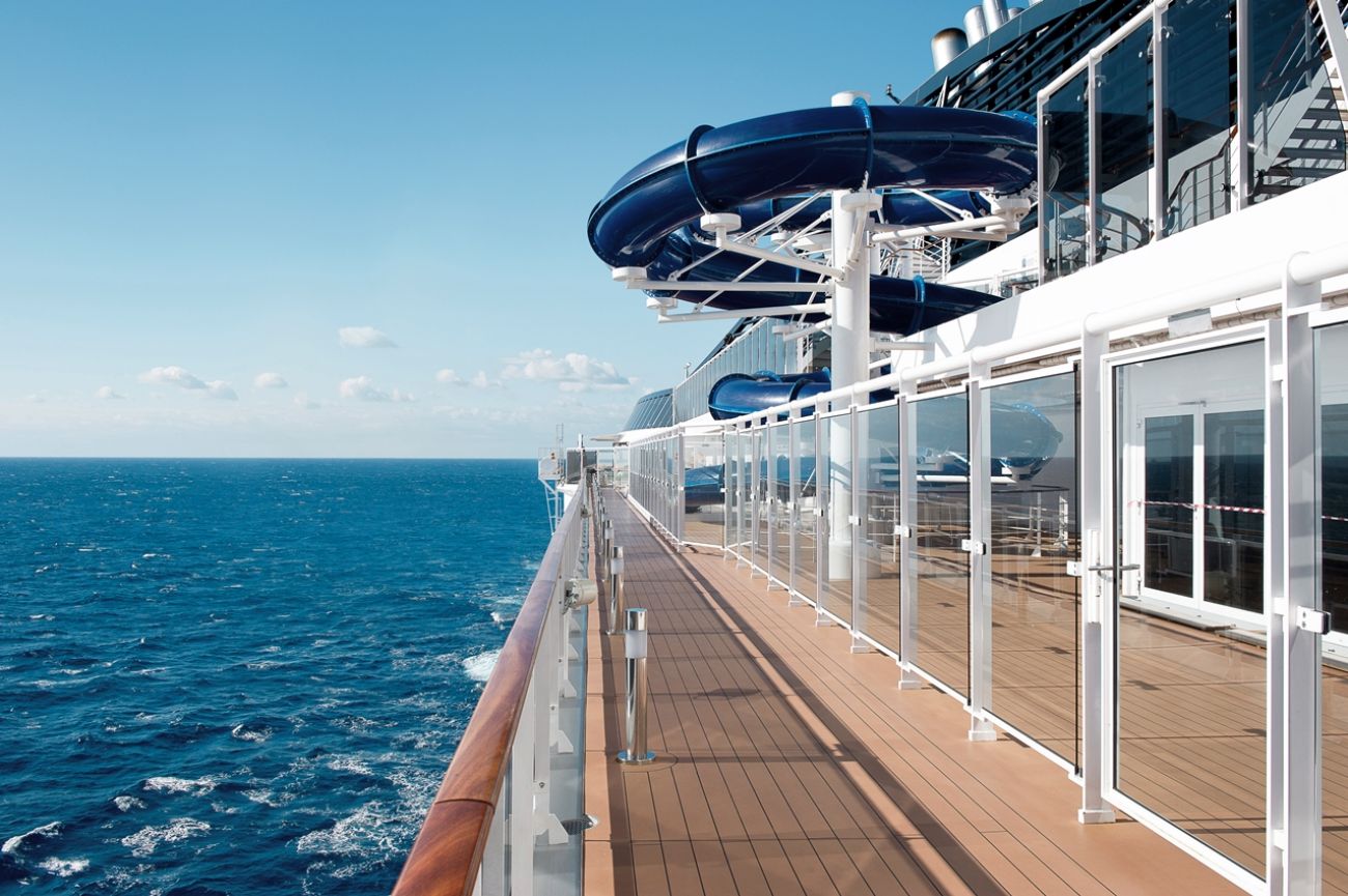 Днес сме на вода и ще разполагаме с цял ден, за да разгледаме нашия плаващ хотел. Слънчевата палуба ни очаква, а забавленията на борда са многобройни.