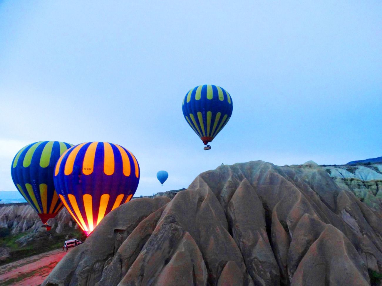 Една от атракциите на Кападокия е издигането с балон рано сутрин, когато първите лъчи на слънцето разбуждат спящите скални градове и разкриват фантастични гледки.