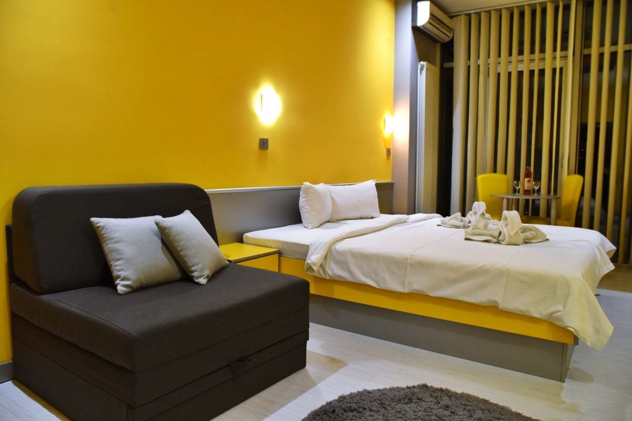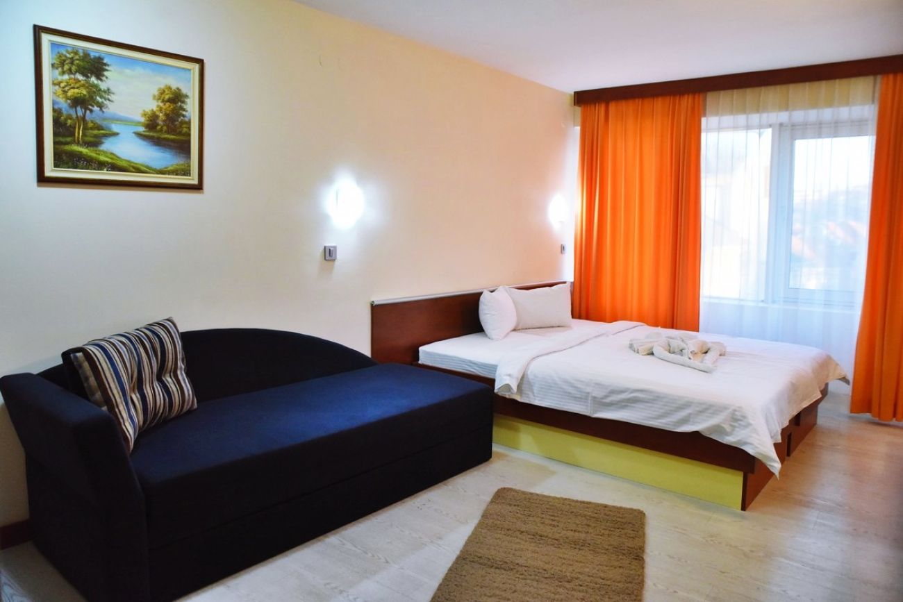 Общо 17 апартамента, всички са климатизирани и с телевизор. Всички апартаменти разполагат с напълно оборудван кухненски бокс, мини бар, хладилник, телефон с директно избиране, сателитна телевизия, част от тях са с балкон.