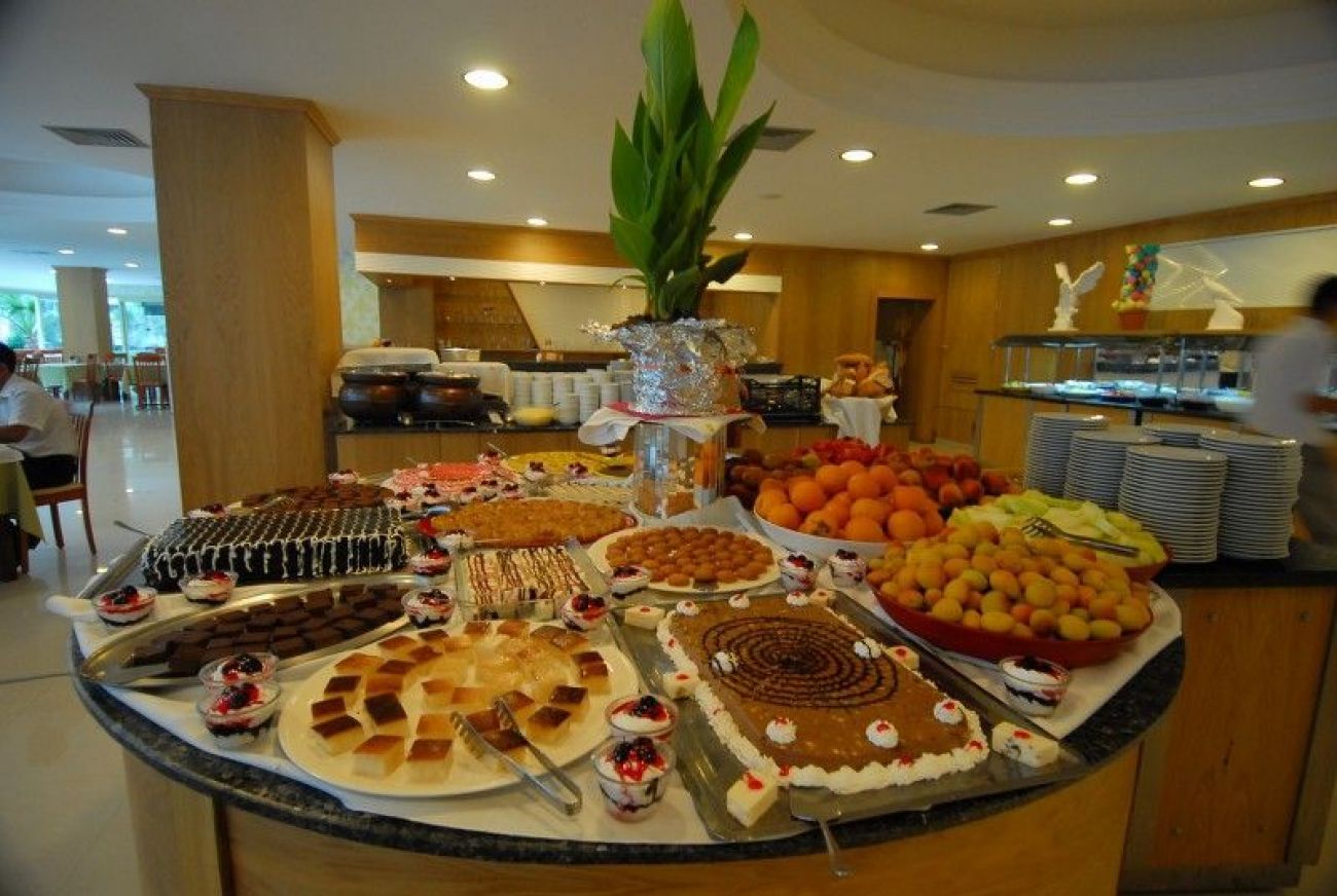 Хотелът предлага сновен ресторант на открито с тераса и капацитет 500 човека, сервиращ международна кухня и детско меню. Бар при басейна (10:00 – 18:30, безплатно), Диско бар (денонощно, срещу заплащане)