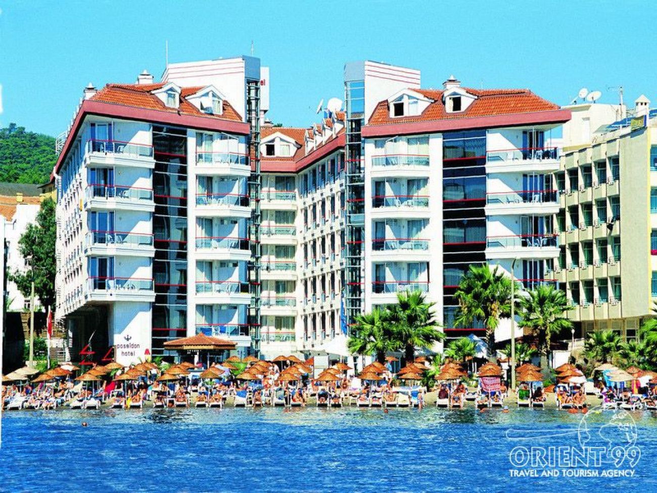 На 95 км. от летището в гр. Даламан, 1,5 км от центъра на Мармарис, на брега на морето със собствен пясъчен плаж, намира се близо до аквапарк “ Atlantis “
