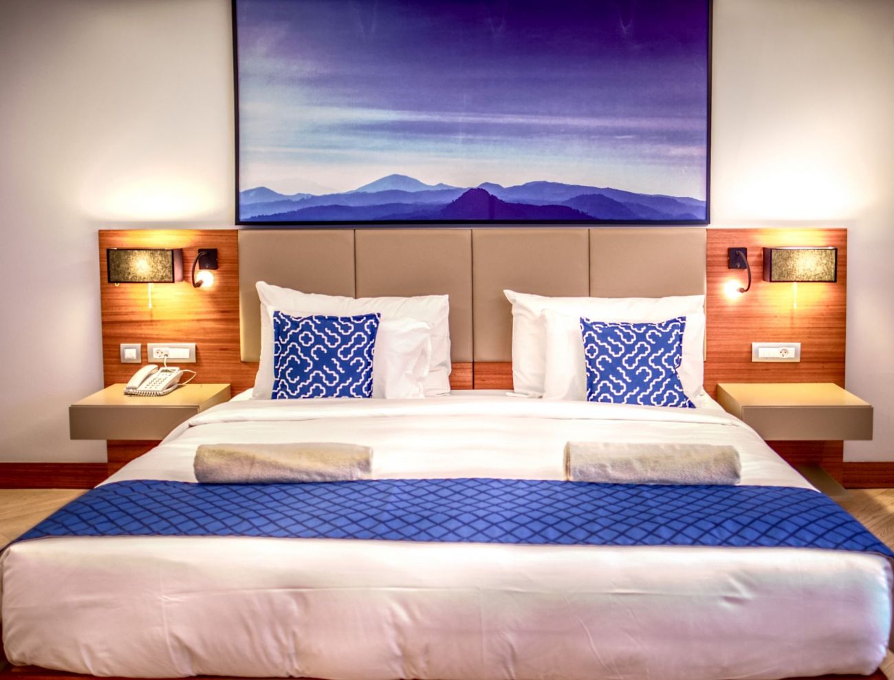 Хотелът разполага общо с 324 стаи, всички оборудвани с климатик, телевизор, телефон, сет за чай/кафе, баня с душ, сешоар, сейф (платен), интернет (платен), балкон. Почистване на стаите - всеки ден, смяна на спалното бельо и кърпите - 3 пъти в седмицата.