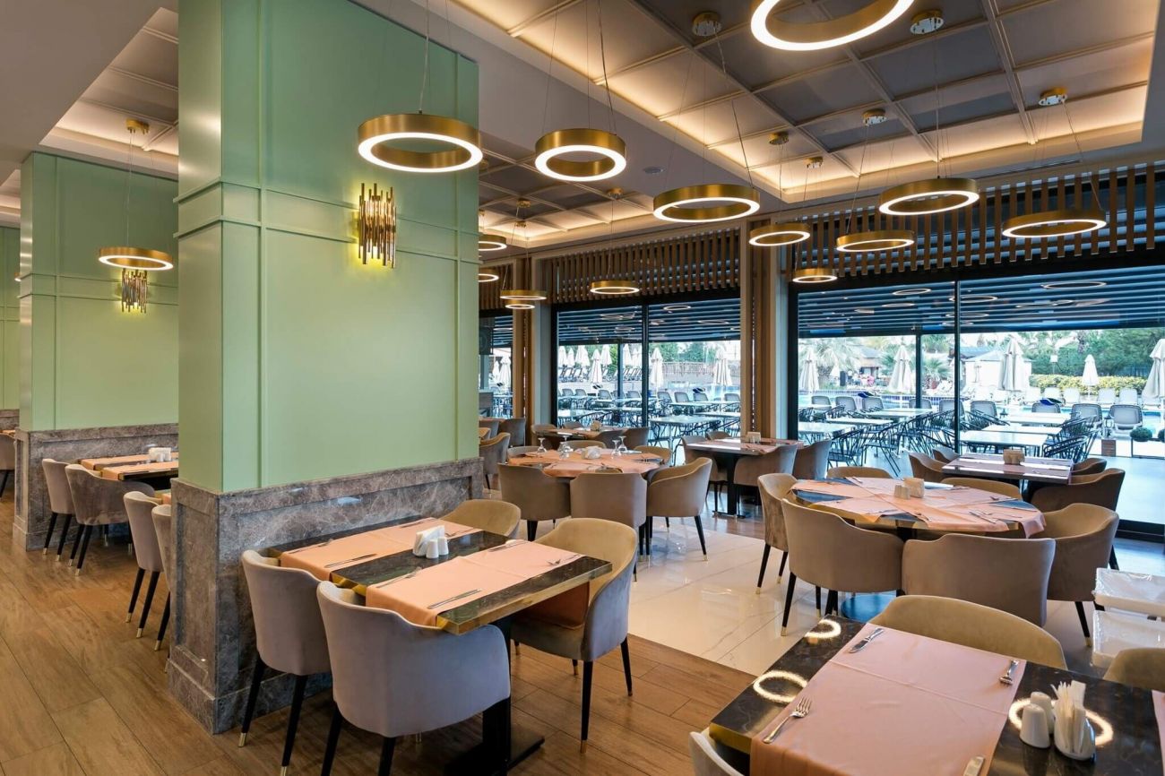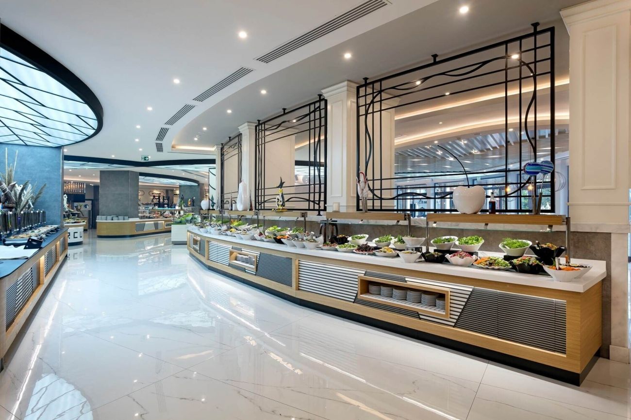 Снек Бар, Вила бар, 2 лоби бара, Кафене, Бирария, турско кафе, 2 Диско Бара, винарна, Waterfall Бар, Бар на басейна, Бар на плажа, Бар Amphi, Efes Beer Garden и други заведения.