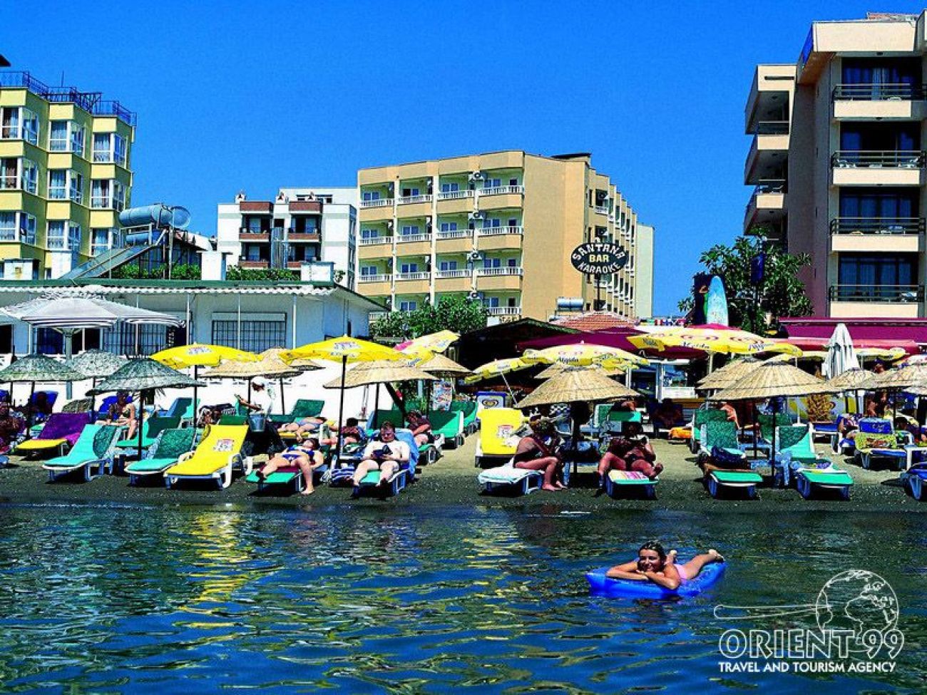 Гостите на хотела ползват обществения пясъчен плаж на Мармарис. Чадъри, шезлонги и матраци се предлагат срещу заплащане.
