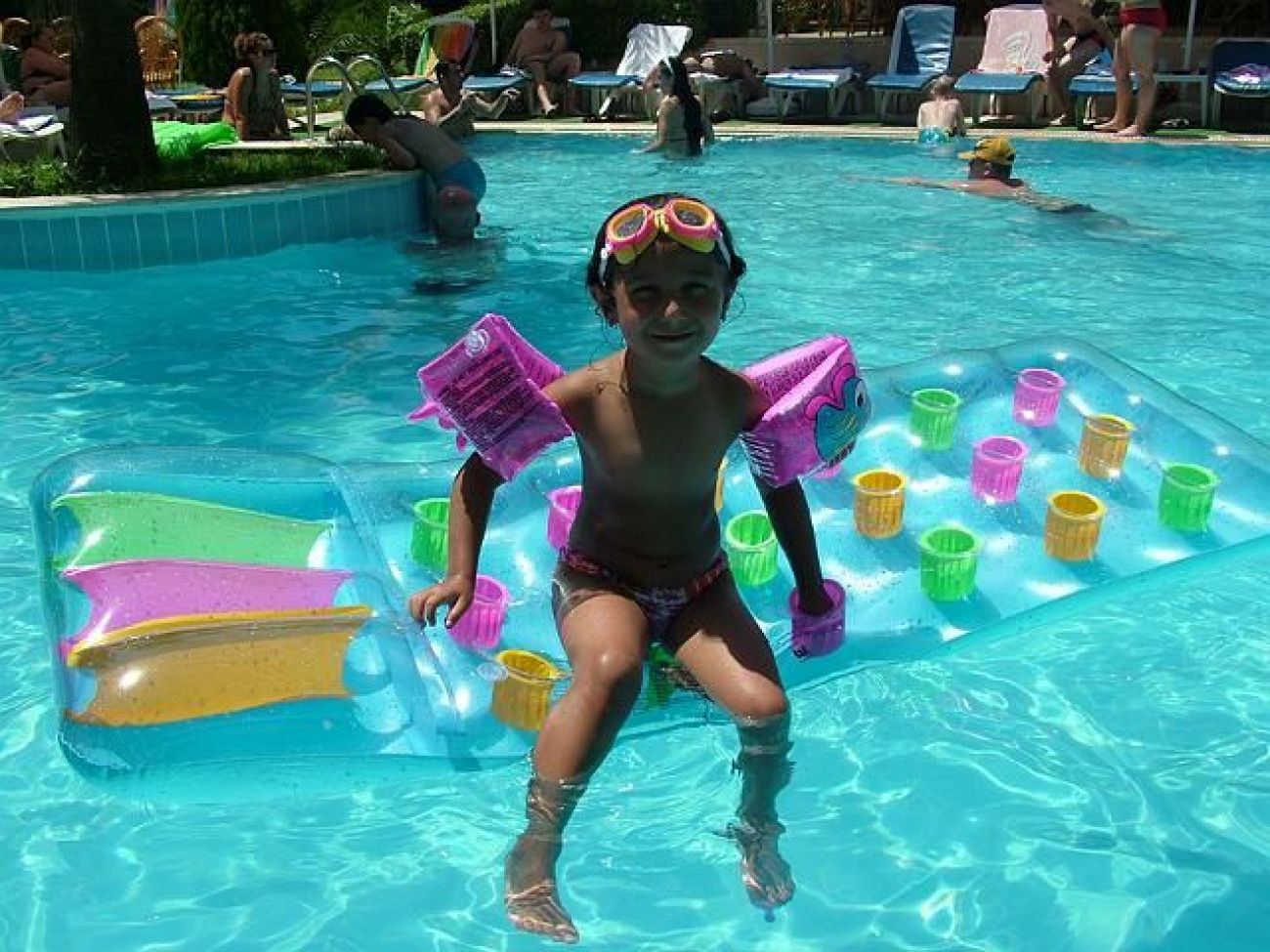 На басейна: Чадъри, шезлонги, матраци – безплатно; Хотела не предлага кърпи за басейна и плажа.