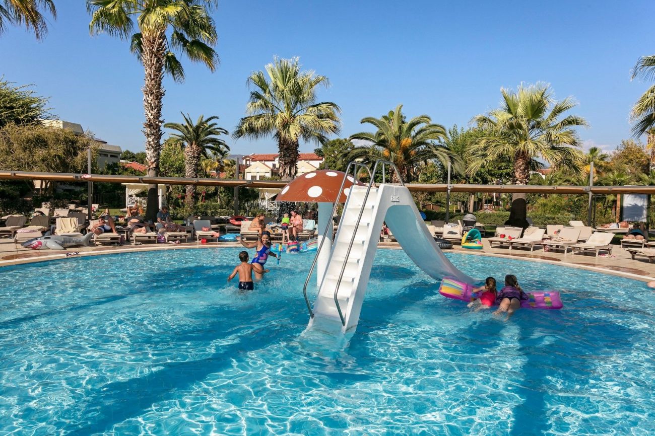 2 ресторанта, 4 бара, 2 открити басейна, 2 водни пързалки, 2 детски басейна, детска площадка, детски басейн, мини-клуб (3-12г.), детегледачка, тв-салон, 3 конферентни зали, турска баня, сауна, фитнес, аеробика, мини-футбол, шоу-програми, безжичен интернет, тенис на маса, тенис на корт (6 корта), плажен волейбол, стрелба с лък, дартс, баскетбол, уиндсърф, катамаран, кану, дискотека, паркинг.