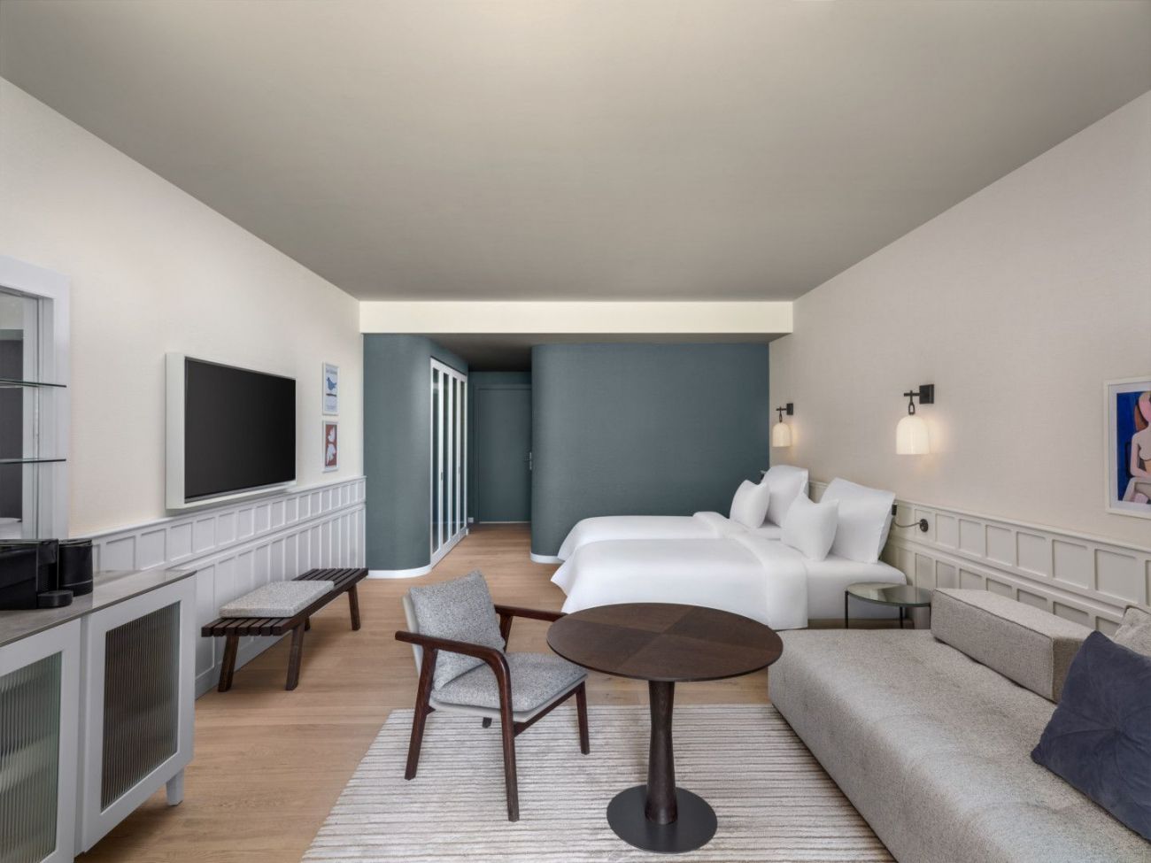 Коментари: 1 спалня (френско легло или две единични легла), диван, интелигентна система за управление на стаите, баня (душ тип дъжд), VRF сплит климатик, интерактивна IP телевизия и функция за предаване от лични мобилни устройства (Casting), сателитни и музикални канали, везни за баня, преса за коса, електронно заключване на вратата, кана и машина за еспресо.
