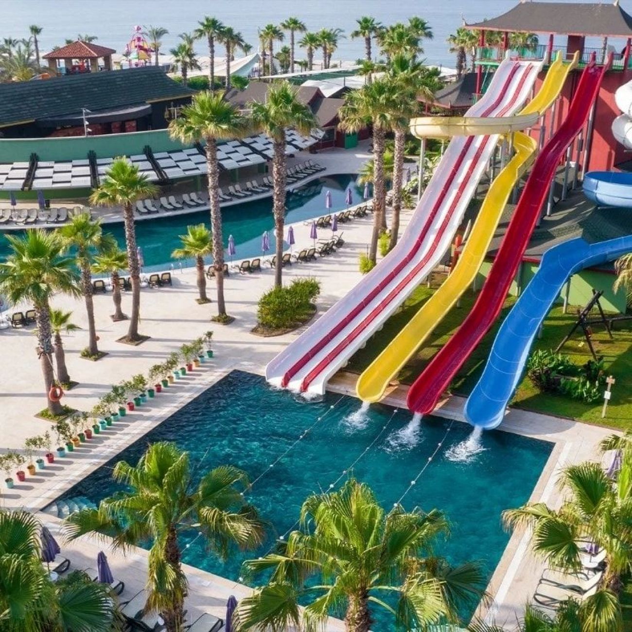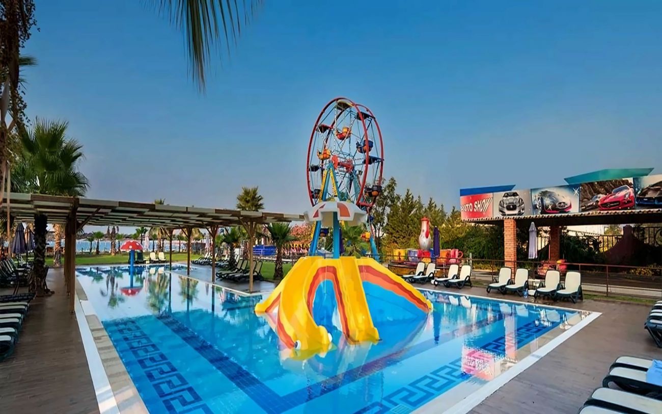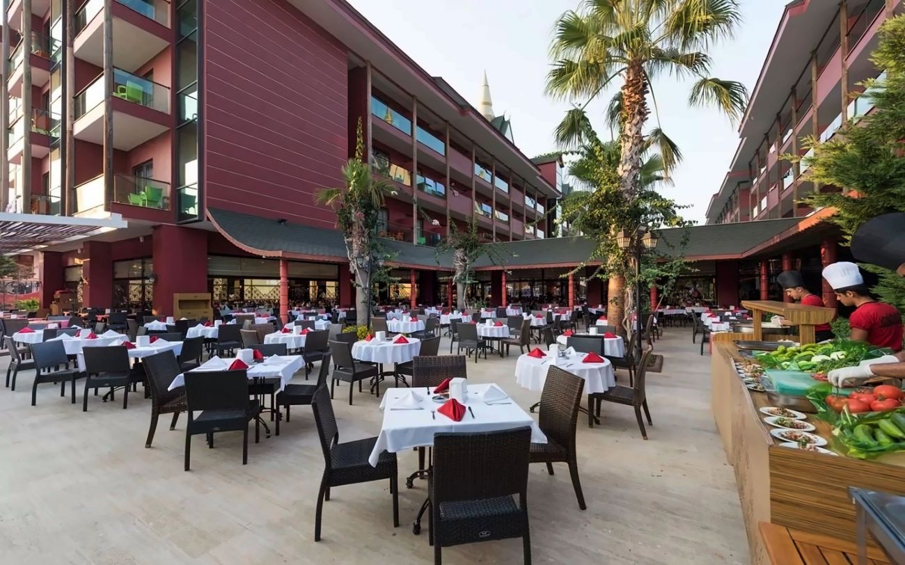 Основен реторант на шведска маса, снек ресторант с турски специалитети, рестотант с балканска кухня, тай ресторант, рибен ресторант, лоби бар, бар на басейна, снек бар, диско бар, кафе, факс, интернет, салон за красота, масаж, 4 открити басейна (два с водни пързалки), два закрити басейна, обмен на валута, коли под наем, детски клуб, детегледачка, конферентна зала, магазини, СПА център, пране, медицинско обслужване.