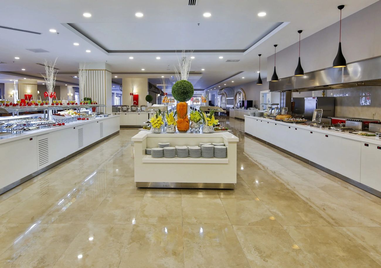 Основен ресторант - отворен бюфет; 2 а ла карт ресторанта - турски и италиански; бар на плажа, бар край басейна, бистро, дискотека (напитките се заплащат)
