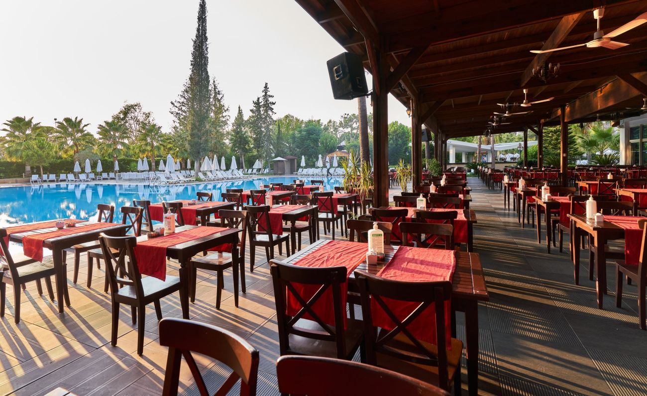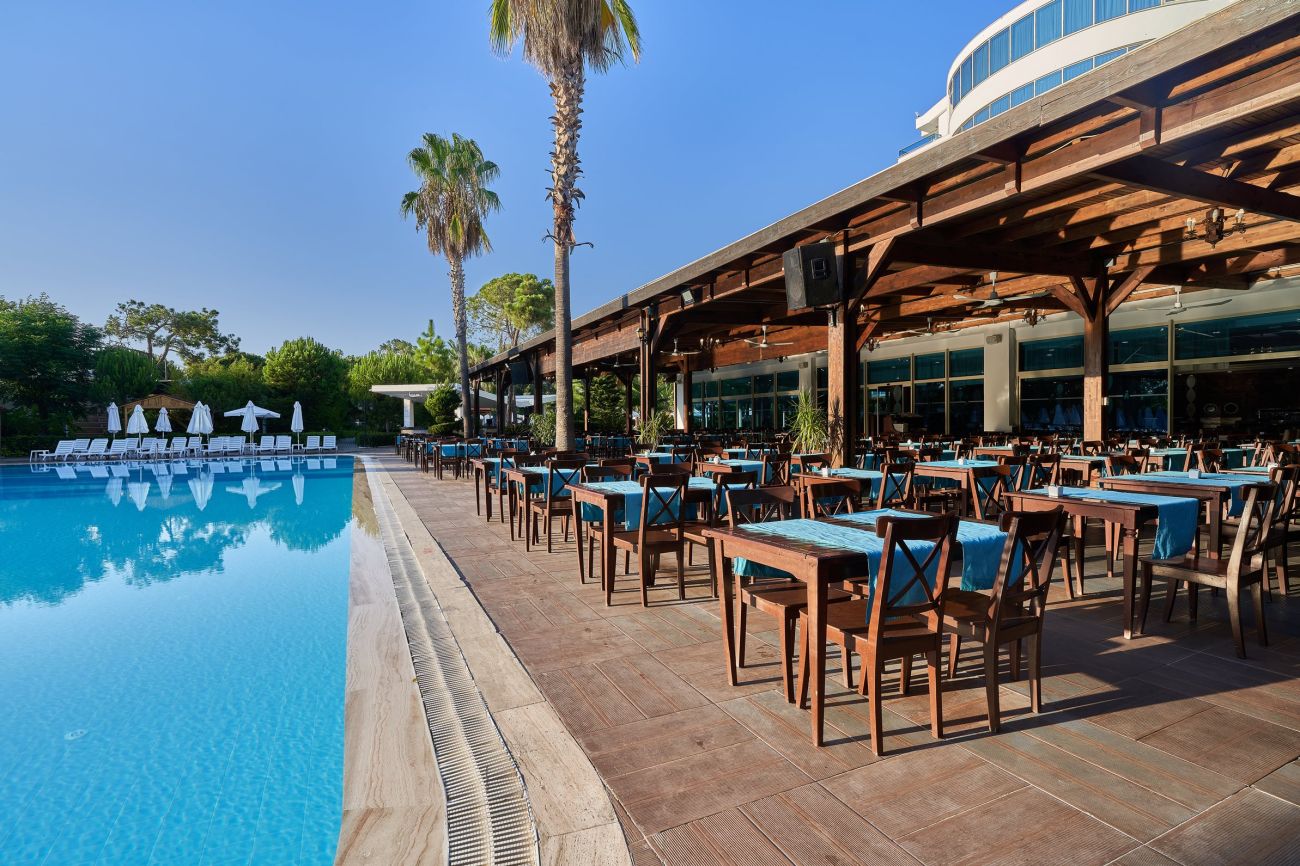 Ultra All Inclusive база. Основен ресторант, средиземноморски а ла карт ресторанти, снек ресторант, бар в градината, лоби бар, бар на плажа, ирландски бар.