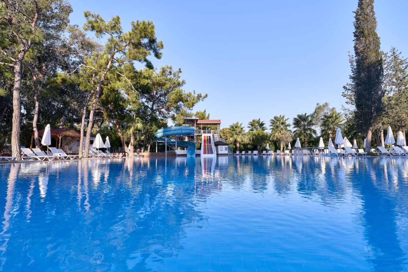 Басейни за деца и възрастни, водни пързалки, дневна анимация, спортни активности, вечерни шоу програми, музика на живо, турска вечер, дискотека, плажни партита.