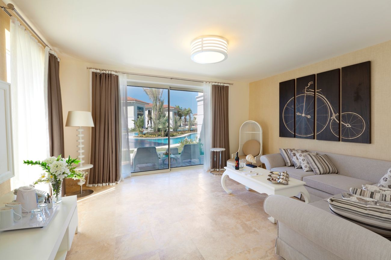 Фамилните суити са 65 кв. м., с изглед градина (garden или land view) и 2 бани.