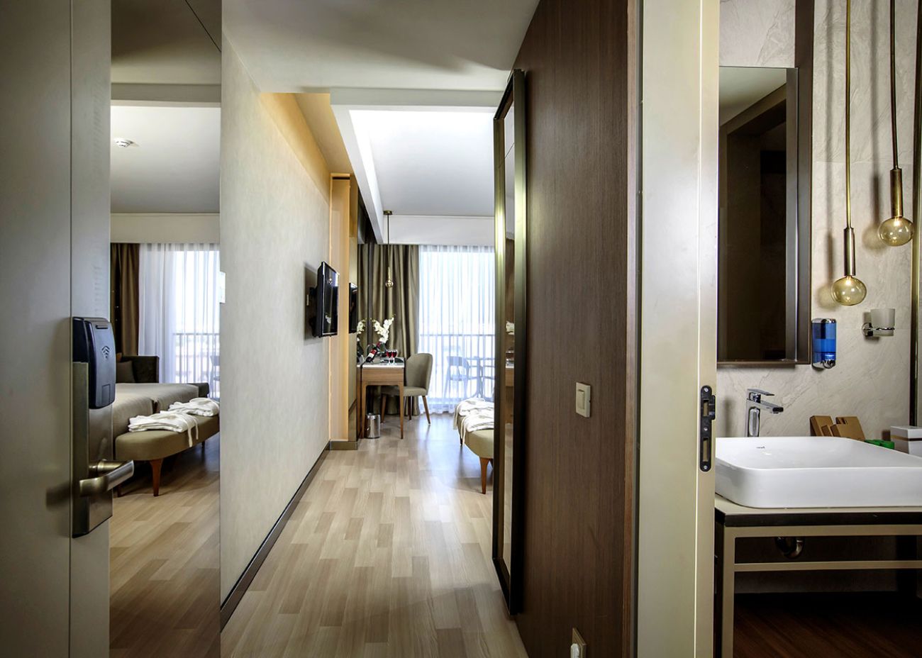 Оборудвани са с климатик, минибар, сет за кафе и чай, сейф. Стаите имат балкон/тераса.