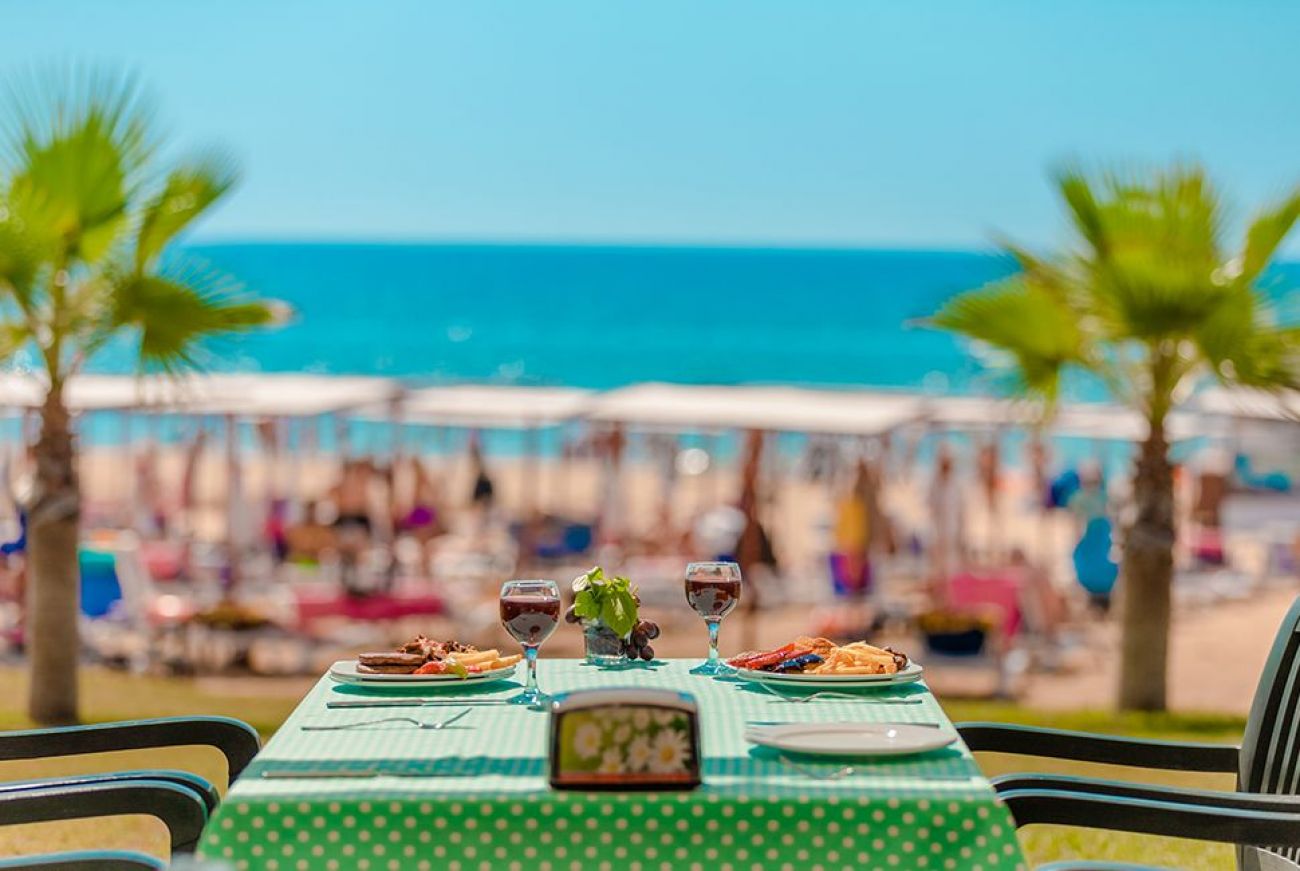 Собствен пясъчен плаж. Чадъри, шезлонги и матраци - безплатно.