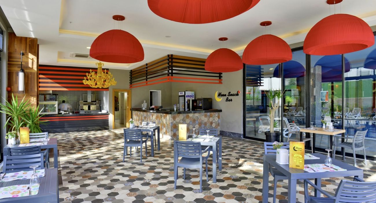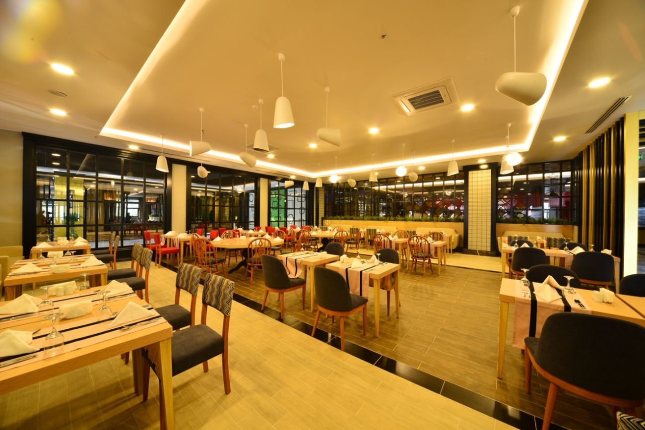 Основен ресторант с отворен бюфет, турски, азиатски и италиански а ла карт ресторанти, гьозлеме, лоби бар, бар край басейна, снек бар, дискотека, сладкарница.