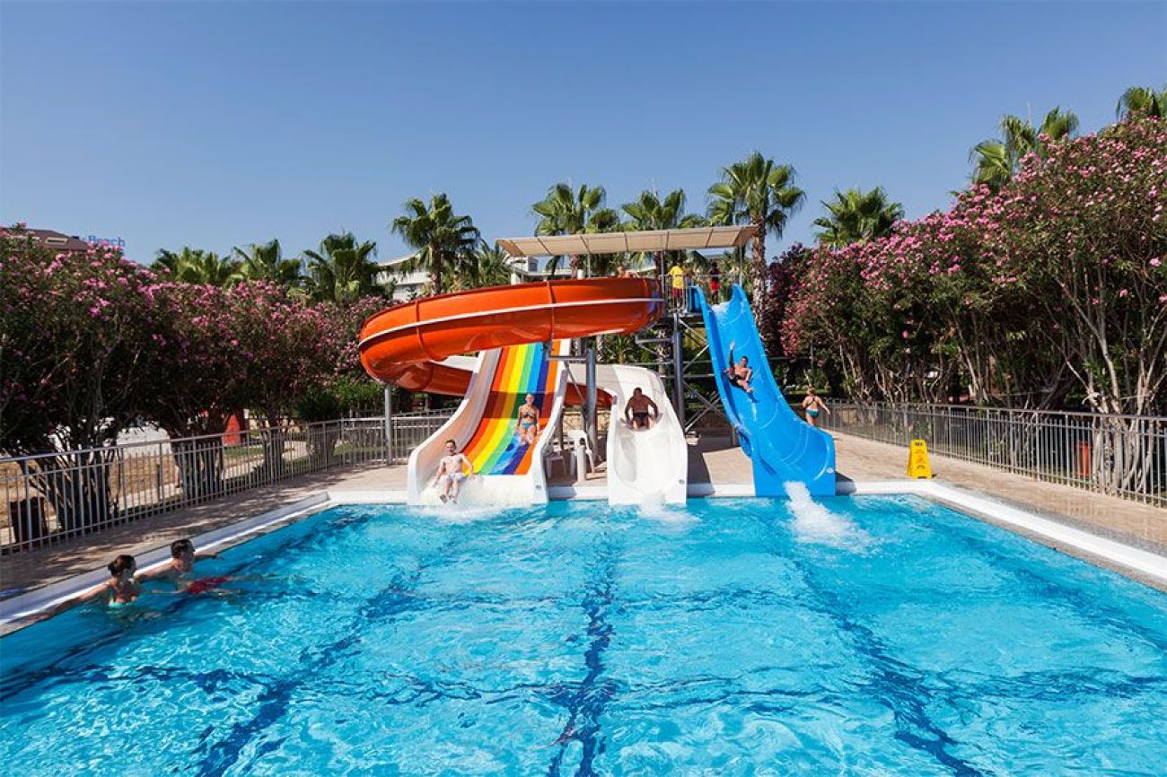 Вътрешен и външен басейн, басейн за деца, водни пързалки, анимация, шоу програми, турска баня, сауна, фитнес, СПА център, детски клуб.