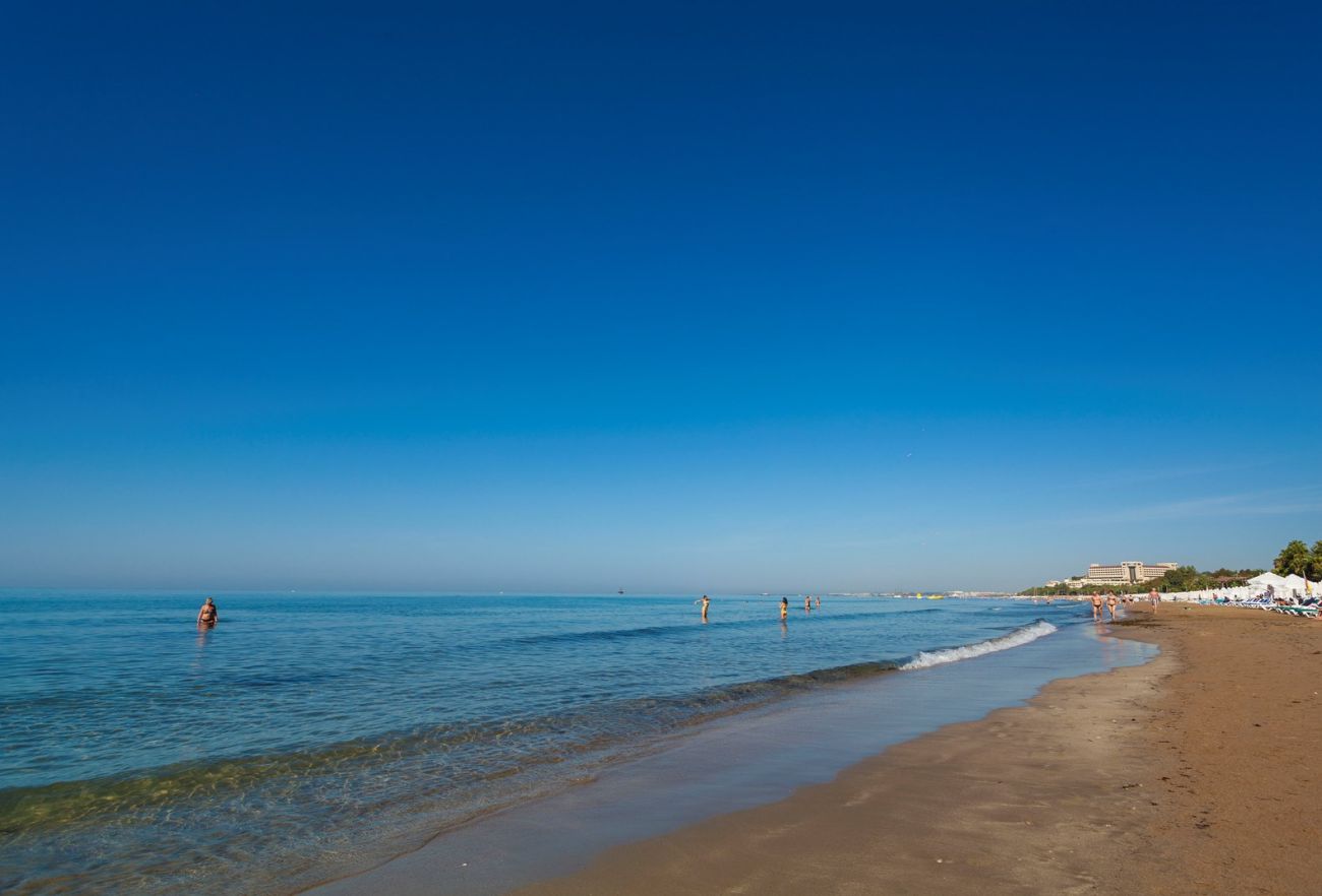 Пясъчен плаж с безплатно позлване на чадъри и шезлонги.