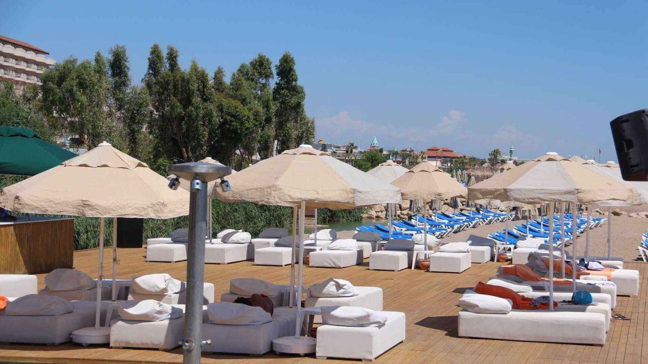 Собствен плаж с дължина 540 м. Безплатно ползване на чадъри.