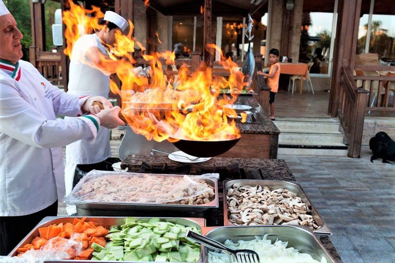 Основен ресторант (предлага диетична храна), 2 ресторанта a la carte: (османска, рибен, с предварително записване - платени; от 01.05 до 31.10), 4 бара, дискотека, 3 открити басейна, закрит басейн (подгрява се през зимата), 2 водни пързалки, Спа център, лекарски кабинет, магазини, фризьорски салон, пералня, конферентна зала.