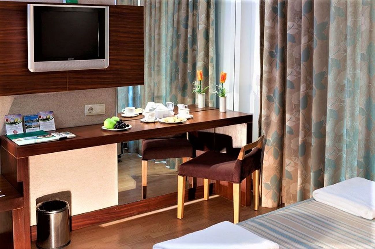 Хотелът се състои от пет 6-етажни корпуса (50% от стаите са с изглед към морето). Общият брой на стаите е 260, които са оборудвани с индивидуален климатик, LCD телевизор, телефон, баня с душ, сешоар, мини-бар безплатно (вода, безалкохолни напитки - ежедневно зареждане), сейф (платено), балкон, WI-FI (безплатно), под - ламинат. Почистване на стаите - всеки ден, смяна на бельо и спални кърпи - 2 пъти седмично.