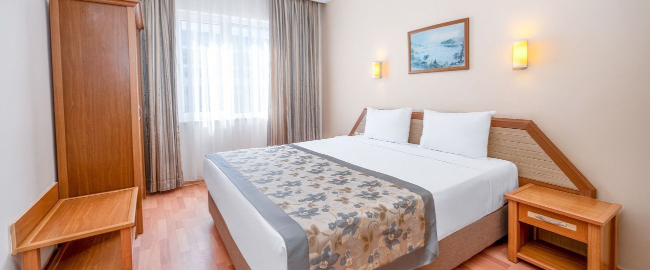 Разположен на 120 км от летище Анталия, на 12 км от центъра на Алания, в района на Конаклъ, на 600 м от брега на морето, с реновация на общи части и делукс стаите.