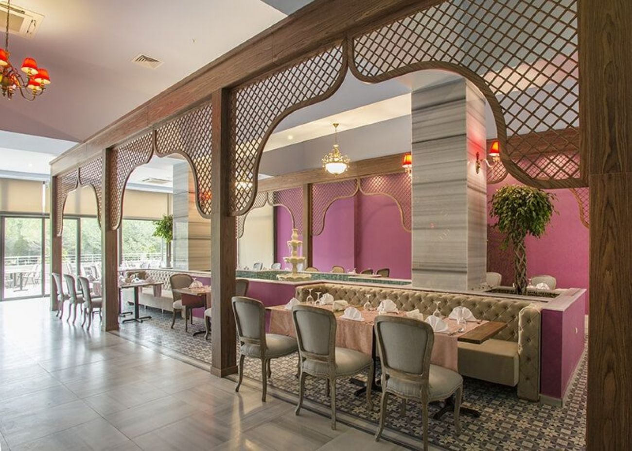 A la carte ресторант Rumi (18:00- 23:00 ч) – анадолска кухня с предварителна резервация – безплатно; A la carte ресторант Quick China (12:00- 24:00 ч) – анадолска кухня с предварителна резервация – такса 9 евро; A la carte ресторант Fratello La Bufala (12:00- 24:00 ч) – италианска кухня с предварителна резервация – такса 9 евро; A la carte ресторант Shorba (08:00- 11:00 ч) -24 ч работи като бистро – закуска с предварителна резервация, A la carte ресторант L`azur (18:00- 23:00 ч) – морски деликатеси с предварителна резервация – безплатно; A la carte ресторант Sefer Tasi Kebab (18:00- 23:00 ч) – с предварителна резервация – безплатно; La Paz Pub (18:00- 02:00 ч) – южноамериканска кухня с предварителна резервация; A la carte ресторант La Promenade (12:00- 24:00 ч) – органична/ диетична/ вегетарианска кухня с предварителна резервация – безплатно;