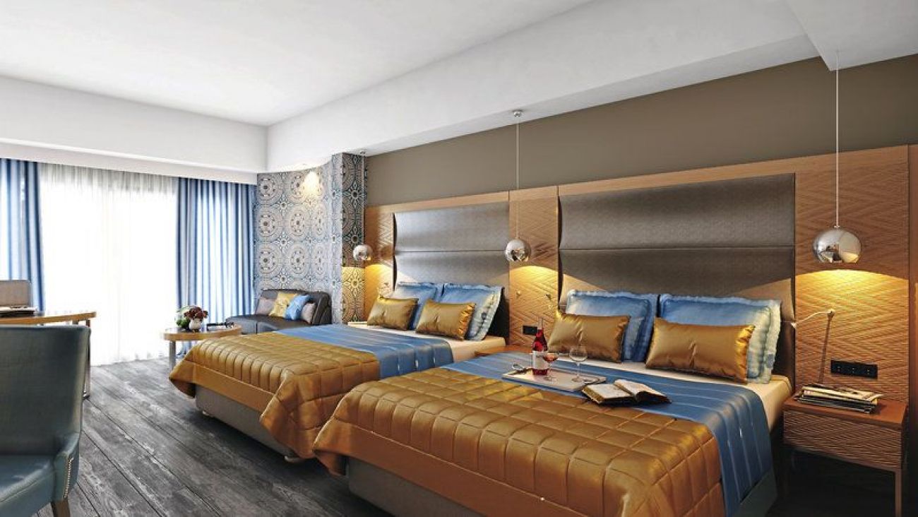 Хотелът разполага общо с 392 стаи. Всички стаи са оборудвани с климатик, телевизор, телефон, баня с душ/вана, джакузи, сешоар, сет за чай/кафе, минибар (безплатeн), сейф (безплатно), бюро, балкон, Wi-Fi интернет (безплатeн). Повечето стаи са с изглед към морето. Почистване на стаите - всеки ден, смяна на спалното бельо и кърпите - три пъти в седмицата.