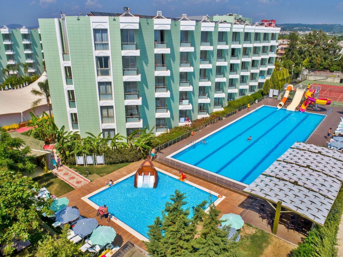 турска баня, сауна, фитнес, дартс, билярд, кино, тенис на маса, тенис корт, плажен волейбол, аеробика, водна гимнастика, водна топка, мини футбол, анимация, безжичен интернет (в лоби).