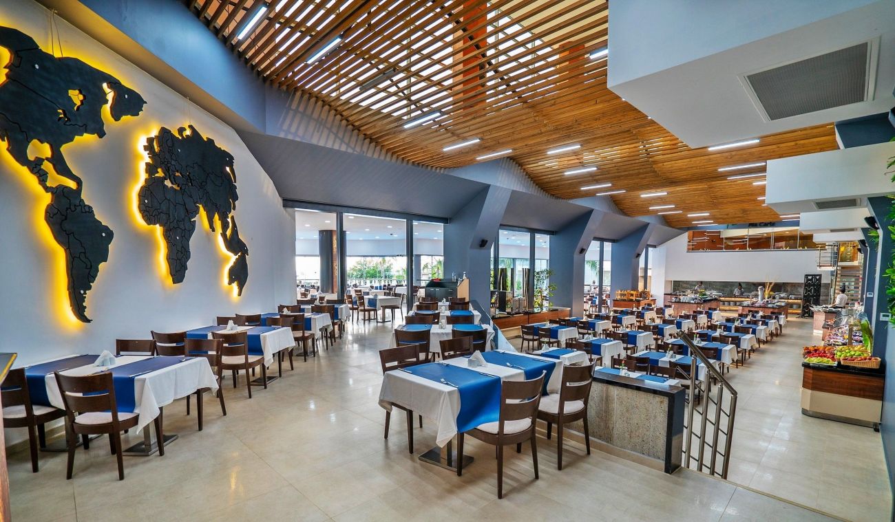 основен ресторант, рибен а-ла-карт ресторант (веднъж седмично, с предварителна резервация), 4 бара, дискотека, открит басейн (410 м²), закрит басейн (192 м²), детски басейн (21 м²), СПА център, магазини