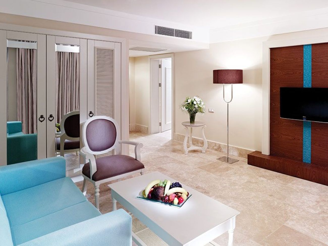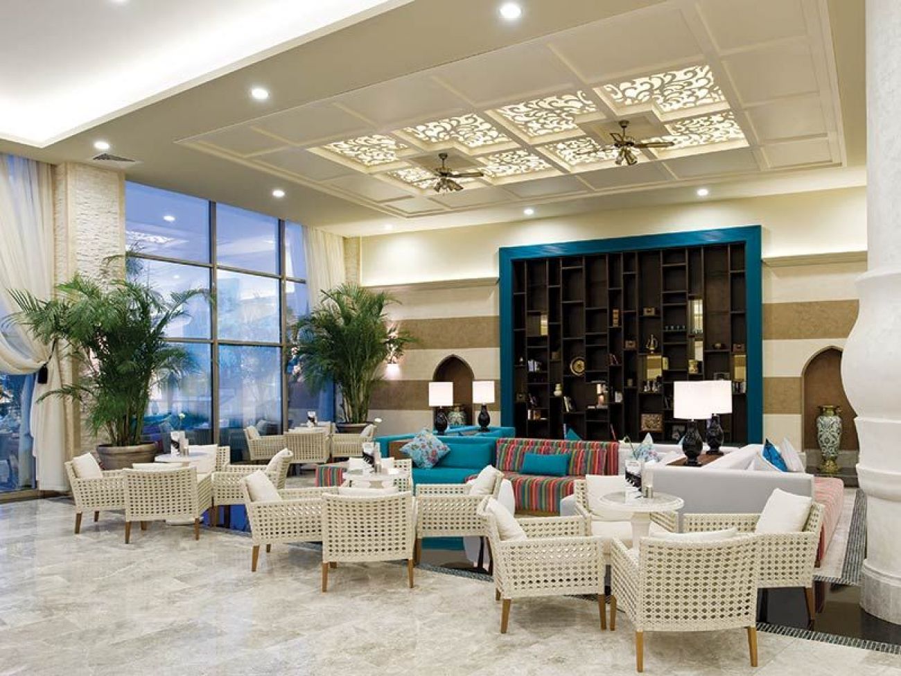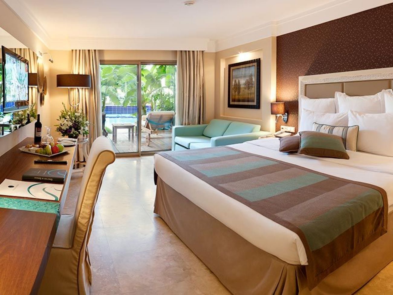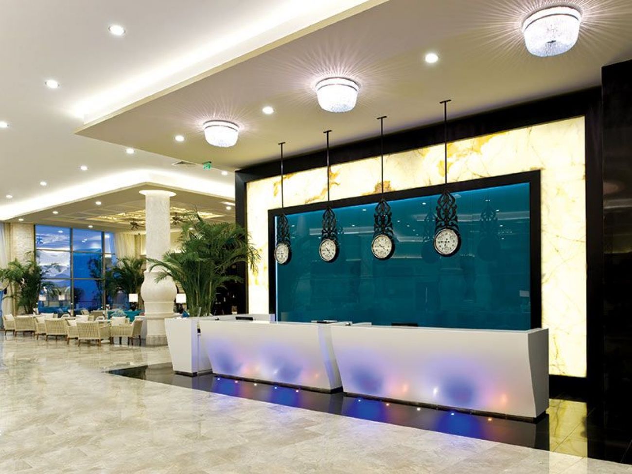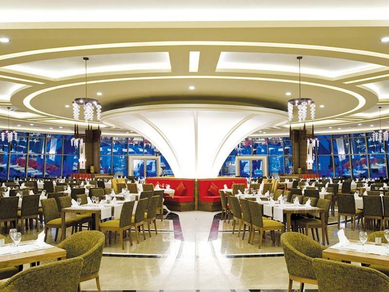 Хотелът разполага с основен ресторант, закуска la сarte (от екологично чисти продукти, които имат сертификат, платено), 5 ресторанта a la carte (международен, турски и рибен – с предварително записване, за 1 седмица престой посещението на един ресторант е безплатно; барбекю и немски – платено), 6 бара (един от тях 24 часа), 2 открити басейна, закрит басейн, 3 водни пързалки, лекар, SPA & Wellness-център, фризьорки салон, магазини, пералня, 4 конферентни-зали (за 500 чов.)