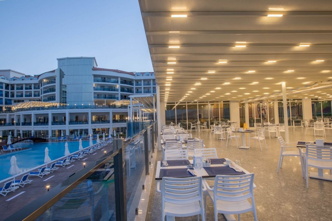 СПА център; а ла карт ресторант; бар; бар на басейна; 4 - басейна / детски басейн, закрит басейн /; безжичен интернет; водни пързалки; обадете се на лекар; конферентна зала; асансьор; лоби бар; обмяна на валута; паркинг; перално помещение; ресторант; сауна; снек бар; турска баня