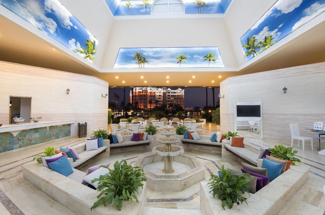 Oсновен ресторант, 5 a la carte ресторанта (китайски, рибен, италиански, турски, мексикански – с предварителна резервация, за едноседмичен престой едно безплатно посещение на един от ресторантите), 7 бара, 3 открити басейна, закрит басейн, релакс басейн, аквапарк (6 водни пързалки), кино (в хотел Fulya), лекарски кабинет, СПА център (в хотел Fulya; платено), фризьорски салон, търговска алея, пералня (платено), химическо чистене (платено), 3 футболни игрища (65х100, 48х90, 70х95)