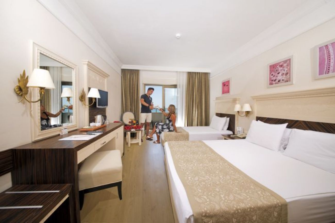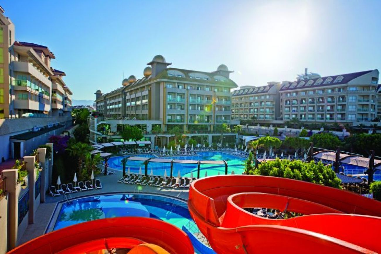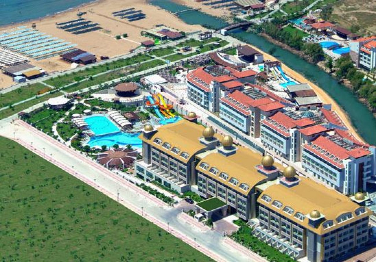 Хотел Aydinbey King's Palace е разположен на брега на Средиземно море и разполага с частен пясъчен плаж. Хотелът включва 3 открити басейна, водни пързалки, фитнес център, СПА център.