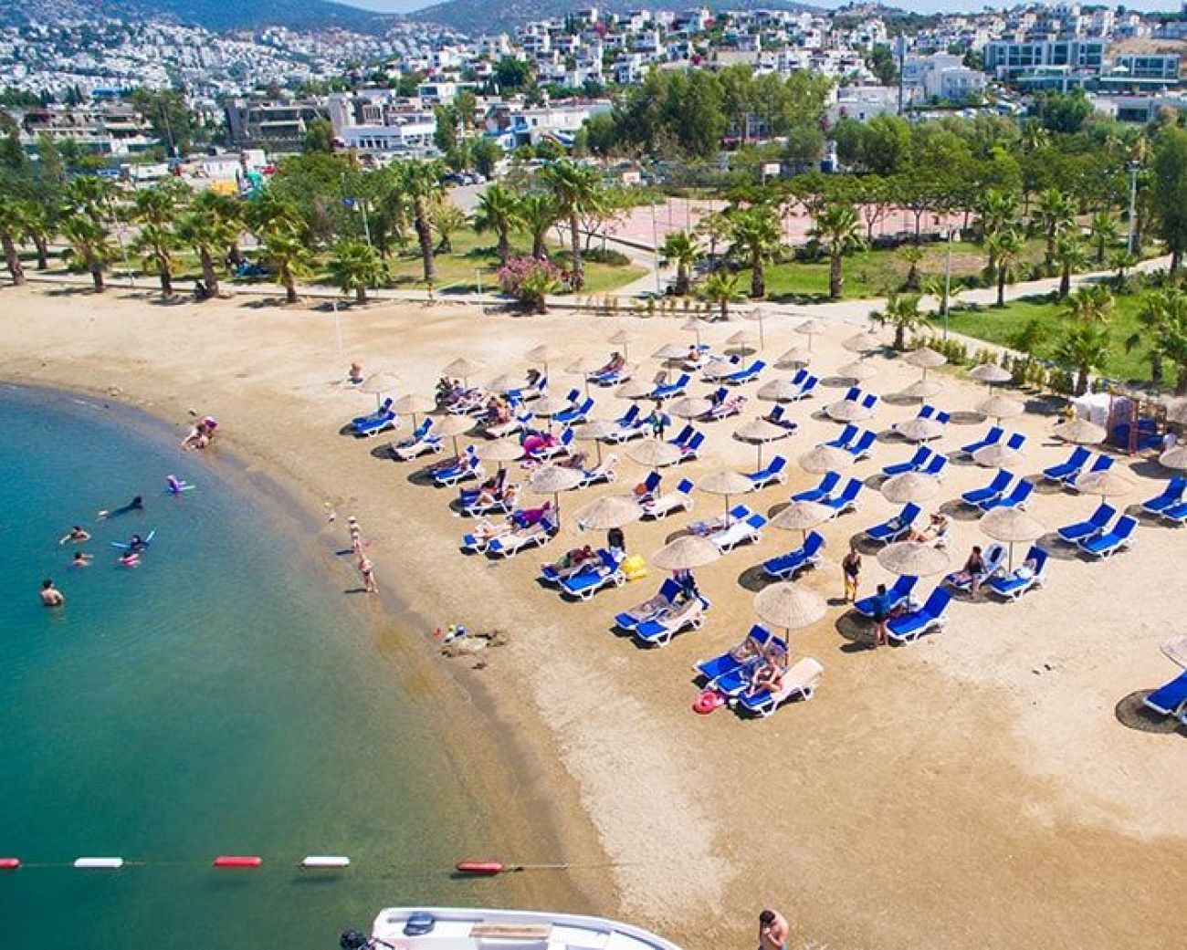 Хотел Anadolu има плаж в Гумбет - 50 метра от хотела, един от най-изисканите заливи на Егейско море. Шезлонги, чадърите и подложките на басейна са безплатни.