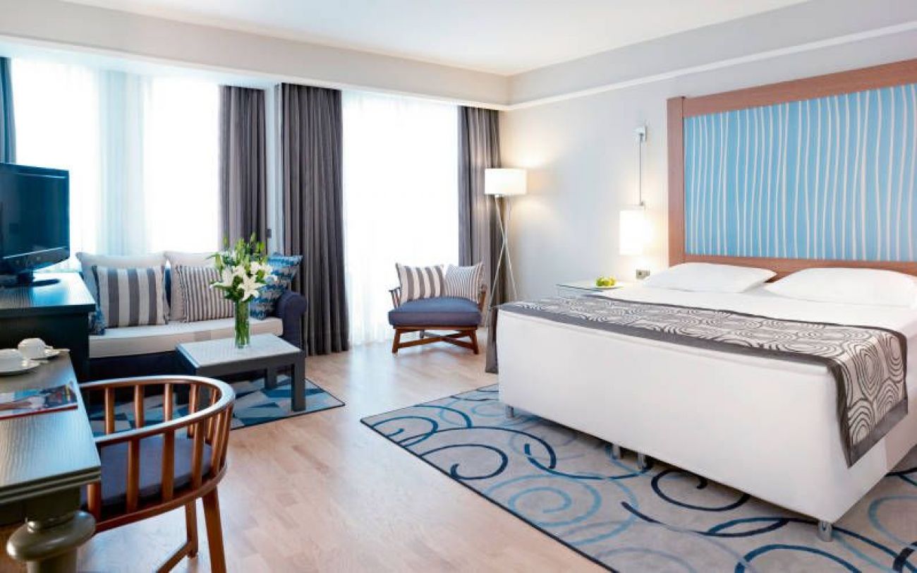 14 тристайни Executive Suite (хол с трапезария, 2 спални с врата, гардеробна, 2 бани (едната с джакузи), макс. 4+2 чов.); 3 четиристайни Royal Suite (хол с трапезария, 3 спални (една с гардероб), кабинет, три бани (едната с джакузи), 2 обзаведени тераси (едната с кът за хранене), макс. 6 +2 души.) Villas: 8-етажна Premium Villa, 1 етажна Royal Villa. Стаите са обзаведени с баня, душ, сешоар, централен климатик, TV, телефон, мини-бар (безалкохолни напитки се зареждат безплатно всеки ден), сейф, балкон или тераса; стаите се почистват всеки ден, смяна на спално бельо - 3 пъти седмично.