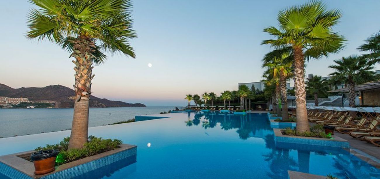 Разположен на 60 км от летището и на 25 км от центъра на Бодрум, в селището Акярлар, на брега на морето. Част от веригата Xanadu hotels. Хотелът е разположен на полуостров сред красиви цветни градини, живописни скалисти хълмове и дървета, обграден от сините води на Егейско море. Само три мили делят Xanadu Island от гръцкия остров Кос.