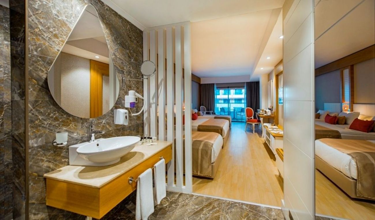 основен ресторант, диетично и вегетарианско меню, 5 а-ла-карт ресторанта(източна кухня, италиански, рибен, барбекю, османски: с предварителна резервация – срещу заплащане), 8 бара(един денонощен), 3 открити басейна, полуолимпийки закрит басейн, 18 водни пързалки (6 за възрастни и 12 за деца), кинозала, лекарски кабинет, СПА център, магазини, пералня и химическо чистене, 4 конферентни зали (за 70 - 1100 човека), безжичен интернет (на територията на хотела, безплатно), интернет кафе (срещу заплащане)
