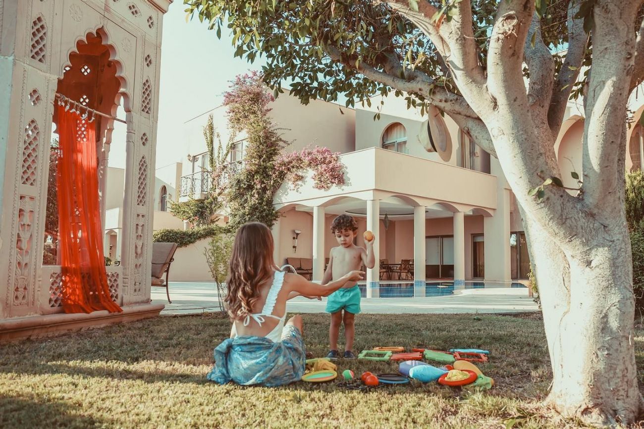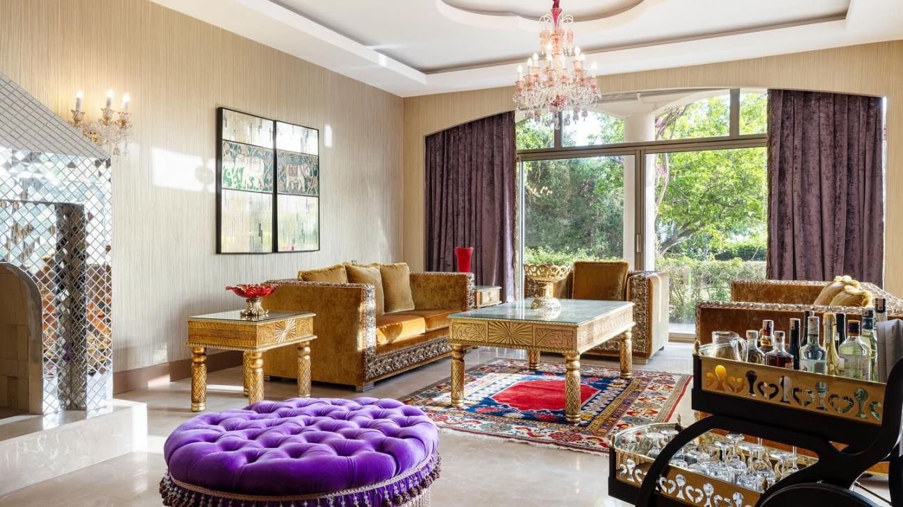 баня с вана, сешоар, халат, чехли, централен климатик (Main Building, Pool Building, Family Building), индивидуален климатик (Villa), телевизор, телефон, мини-бар (вода, безалкохолни напитки, вино и мляко (по запитване за семейства с деца), зарежда се ежедневно, безплатно), сейф (безплатно), под - паркет (Penthouse Suite & King Suite - паркет и мокет, Villa - паркет и мрамор), балкон или тераса, ежедневно почистване на стаята, смяна на спално бельо - 3 пъти седмично, room service (24 часа, платено), Wi-Fi интернет (безплатно)