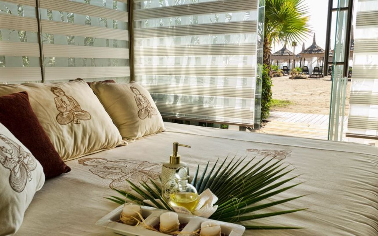 Собствен, пясък. Пирс. Бар на плажа и на пирса: безплатно. На басейна и на плажа: чадъри, шезлонги, матраци - безплатно. Шатри на плажа: платено. Плажни кърпи – безплатно.