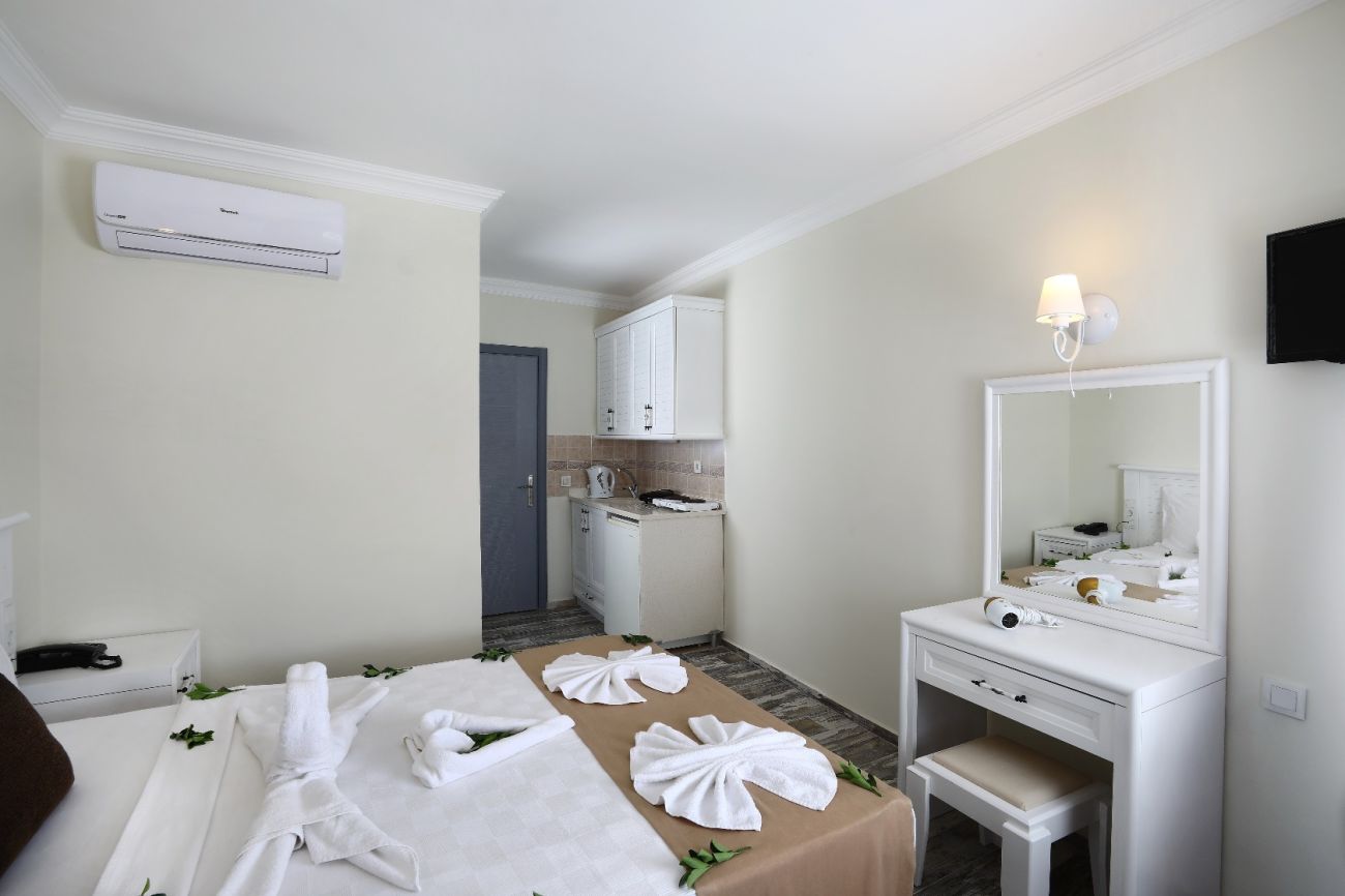 Стандартни стаи, фамилни стаи и студиа. Стаите са с изглед басейн или градина. Всички са оборудвани с климатик, телевизор, сешоар, малък хладилник.
