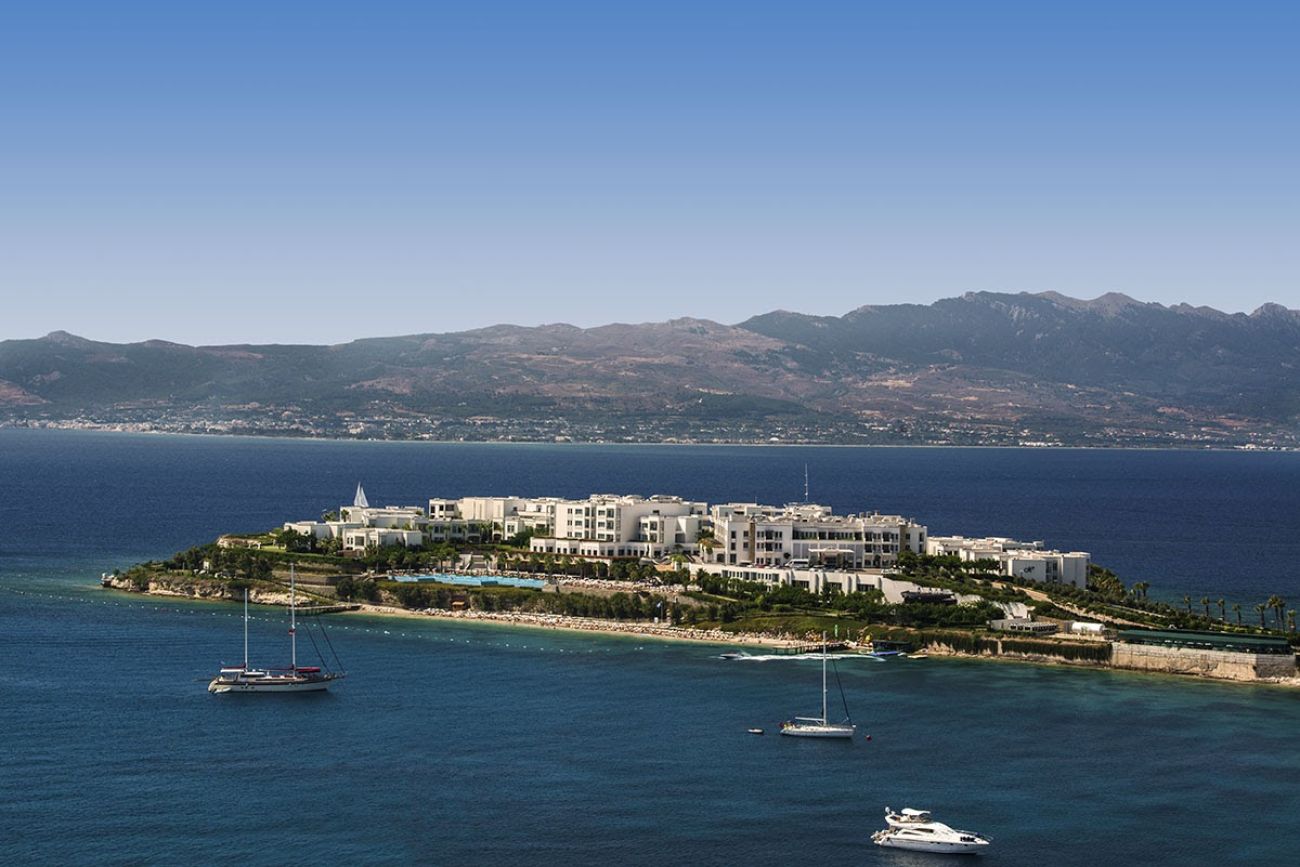 Xanadu Island Hotel е разположен на полуостров сред маслинови градини и скалисти хълмове. Намира се в селището Акярлар, на 25 км от центъра на Бодрум и на 65 км от летище Милас.