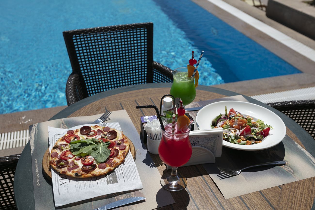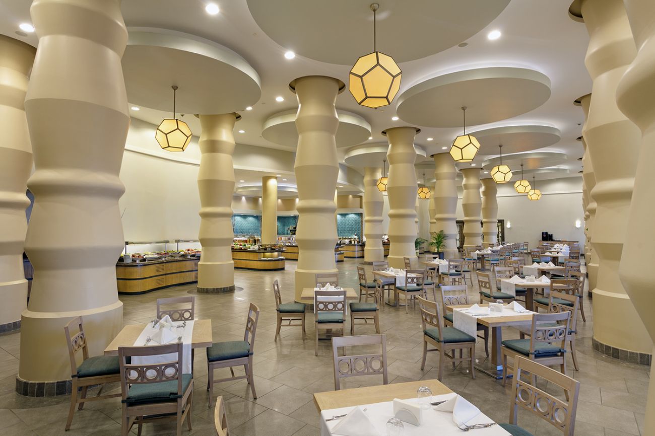 Настаняване на база High Class All Inclusive на отворен бюфет. 3 а-ла-карт ресторанта - италианска, турска и морска кухня. 7 бара.