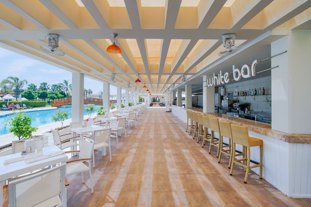 Настаняване на Ultra All Inclusive база на отворен бюфет в основен ресторант с външна и вътрешна част. Френски ресторант (brassarie), снек бар, 3 а-ла-карт ресторанта: италиански, мексикански, турски. 6 бара.