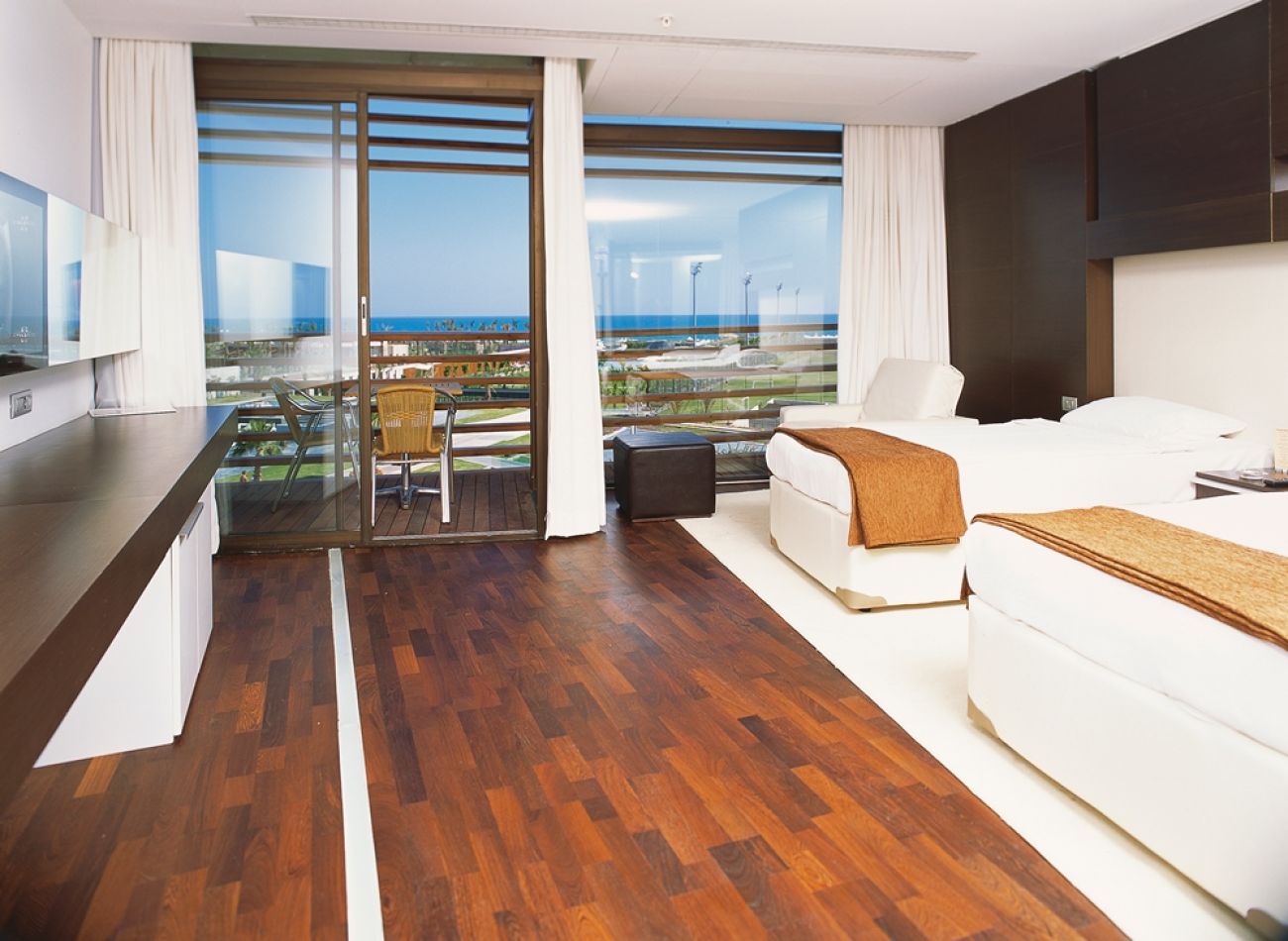 Стандартни, супериорни, делукс стаи с площ от 28 до 60 кв. м. Всички те имат балкон и са оборудвани с климатик, минибар, телевизор, сешоар и други.