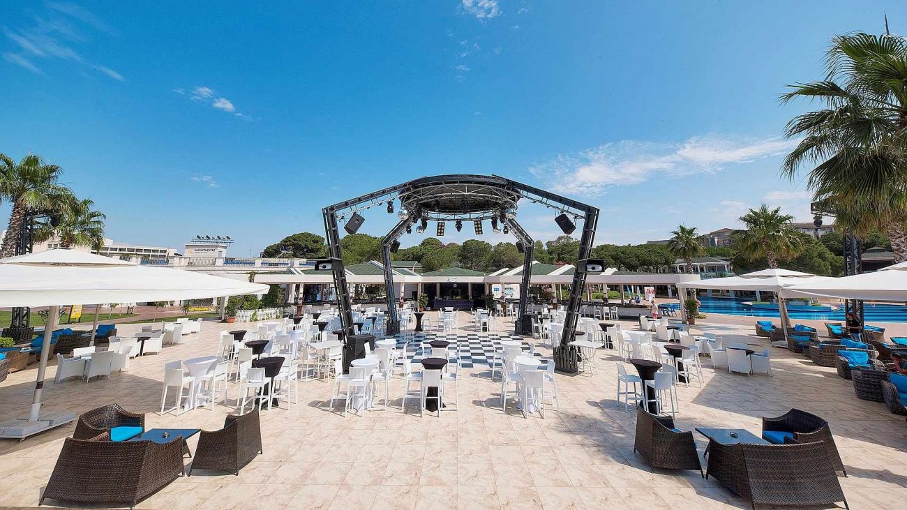 1 основен ресторант, 5 а-ла-карт ресторанта, 6 бара, 7 открити и 1 закрит басейн, детски басейни, 5 водни пързалки, СПА център, турска баня, сауна, фитнес, фризьорски салон, магазини, лекарски кабинет, пране и химическо чистене, аеробика, водна гимнастика, водно поло, тенис, тенис ракети и топки, плажен волейбол, тенис на маса, стрелба с лък, дартс, боча, музика на живо, дискотека, анимация, уроци по тенис, уроци по голф, игрални автомати, билярд, уроци по дайвинг, детска площадка, детски клуб.