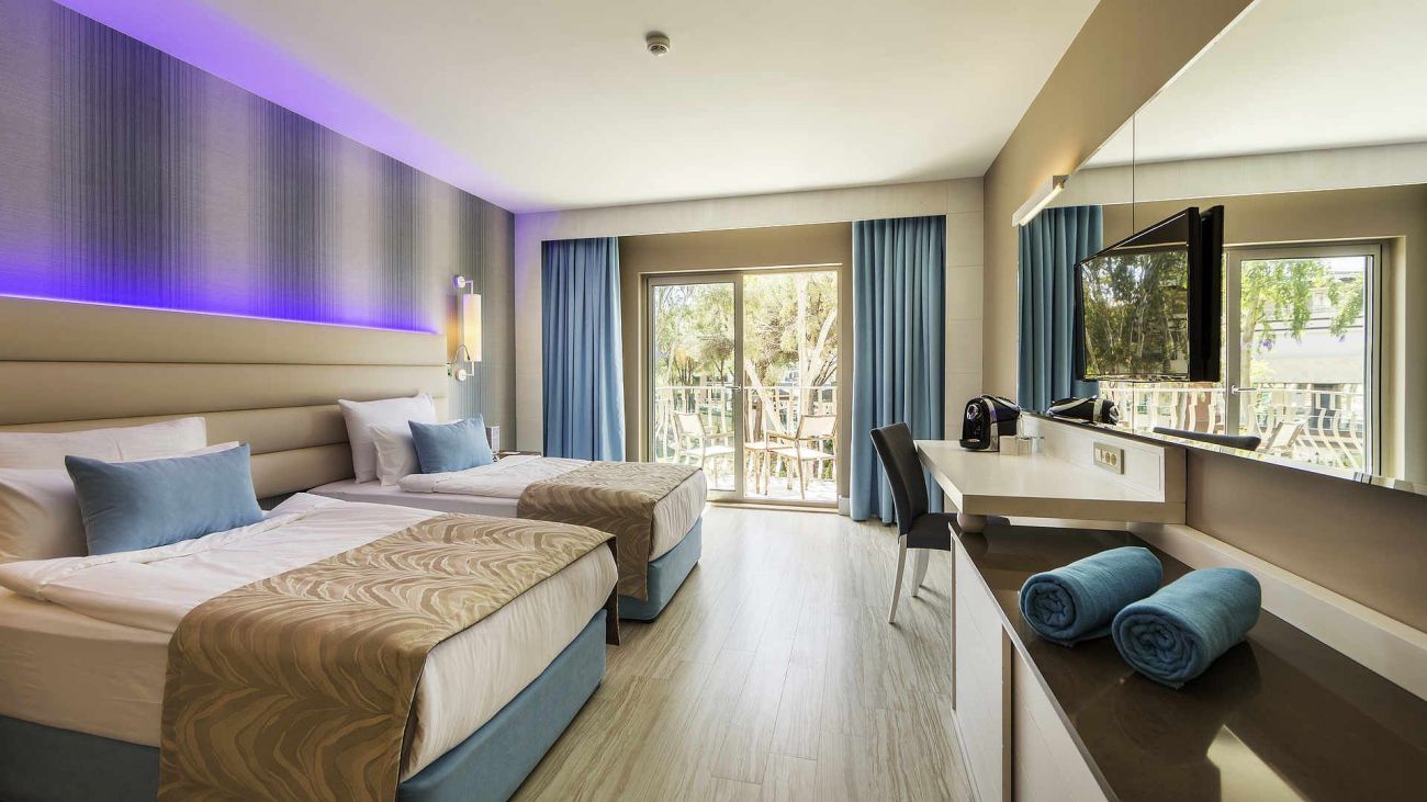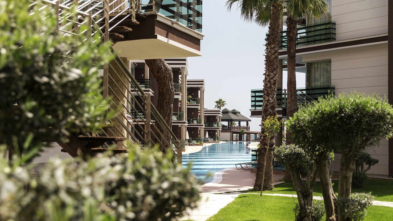 Намира се на 35 км. от летище Анталия на брега на морето. Територията на хотела е с обща площ от 120 000 кв.м. Реновиран основно през 2016 г.