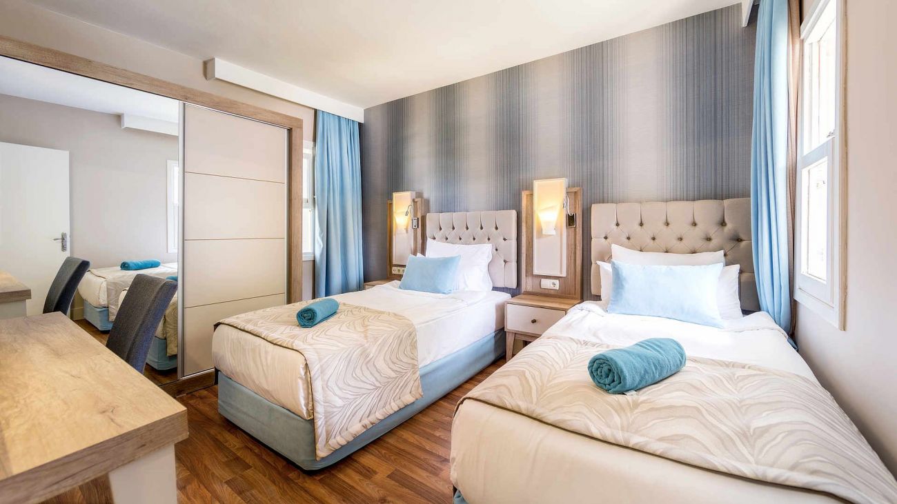 Всички стаи са оборудвани с климатик, телевизор LCD, телефон, баня с душ, сешоар, мини бар, сейф, Wi-Fi достъп до интернет, балкон. Почистване на стаите - всеки ден, смяна на спалното бельо и кърпите – 3 пъти в седмицата.