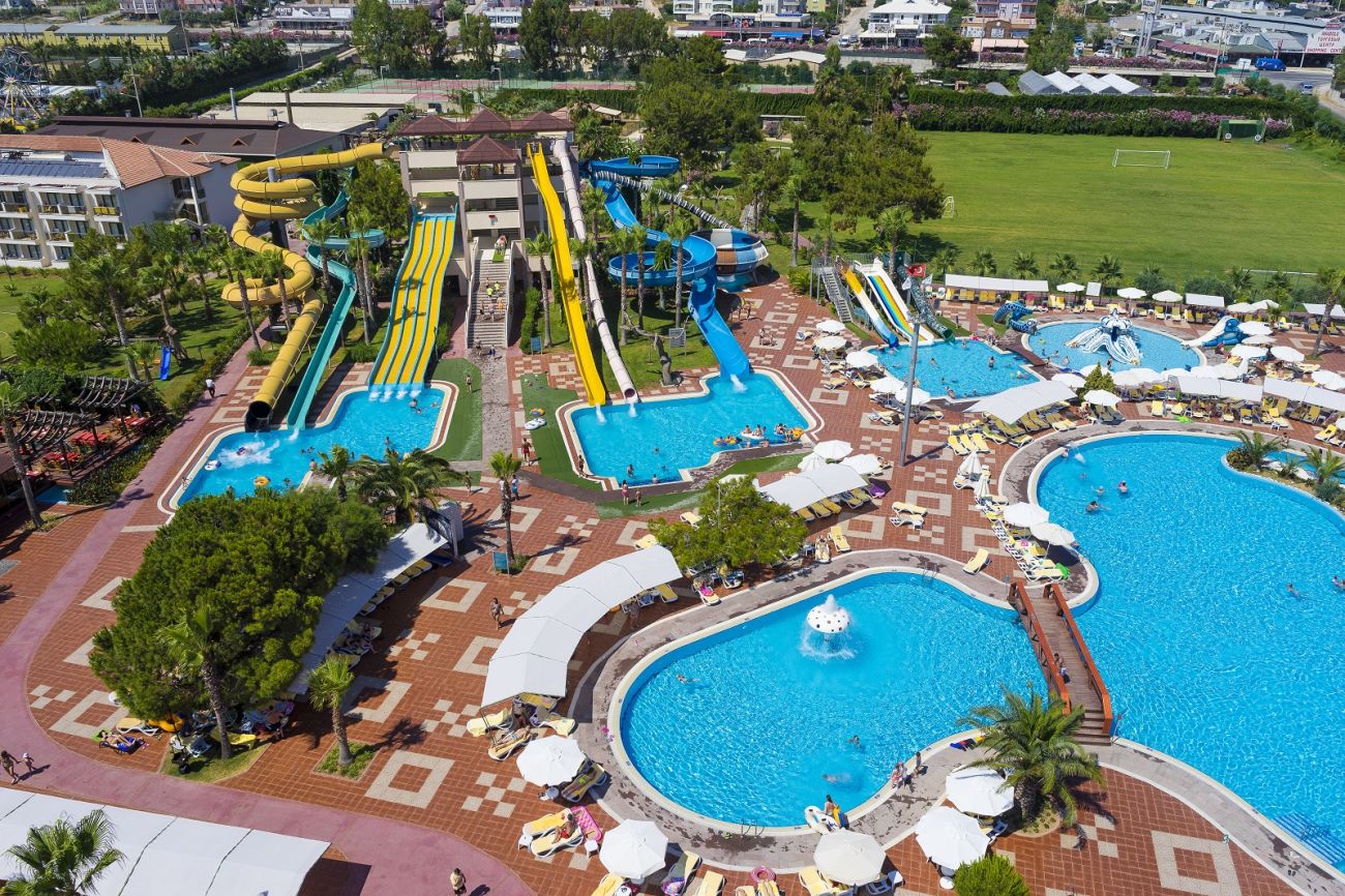 1 основен и 3 ала карт ресторанта, ресторант на плажа и в аквапарка, лоби бар, 7 бара, 1 олимпийски басейн, релакс басейн, детски басейн, закрит отопляем басейн с детска секция, Аквапарк с 14 пързалки, Лунапарк, мини зоопарк, дискотека, СПА център, магазини