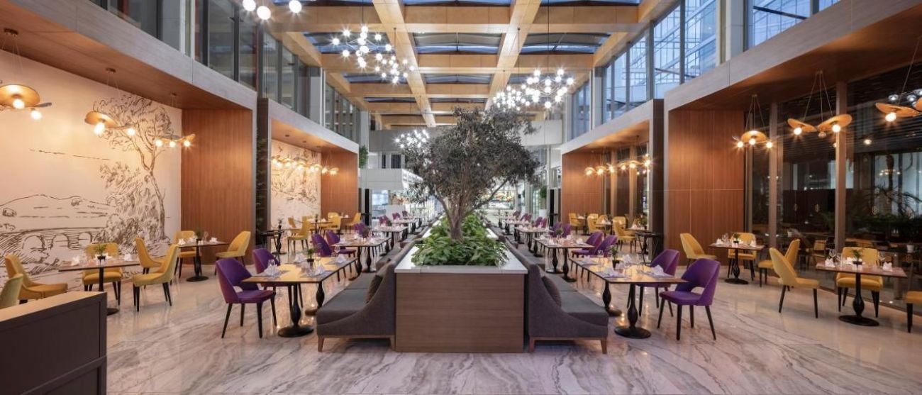 основен ресторант, диетично меню, 3 ресторанта a-la-carte (латински, далекоизточен, средиземноморски - с предварителна резервация, за едноседмичен престой посещение на един ресторант - безплатно), 6 бара (един от тях работи 24 часа), 3 открити басейна, закрит басейн, 4 водни пързалки, лекарски кабинет, SPA-център, фризьорски салон, търговска част, пералня, 15 конферентни зали (за 20-2000 чов.), 2 футболни игрища (по стандарт на UEFA, 70х110 м), безжичен интернет (в лоби и бар "Сафир", безплатно)