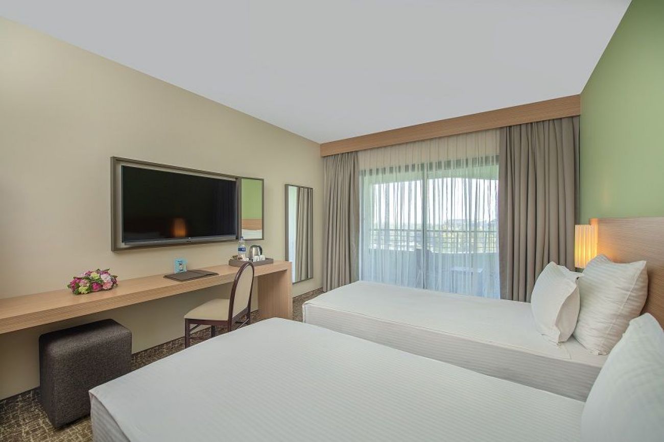 Балкон Централен климатик Сейф (безплатно) Телевизор Wi-Fi (безплатно) Телефон (срещу заплащане) Сешоар (безплатно) Мини-бар (безплатно) Душ, чехли (безплатно) Рум сервиз (срещу заплащане),чайник